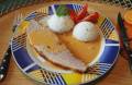 3. Do šťavy pridáme kyslú smotanu, v ktorej sme rozmiešali lyžicu hladkej múky a na jemné kocky nakrájaný zbytok slaniny. Premiešame, plátky mäsa vrátime do omáčky a spolu prehrejeme. Podávame s ryžou.
